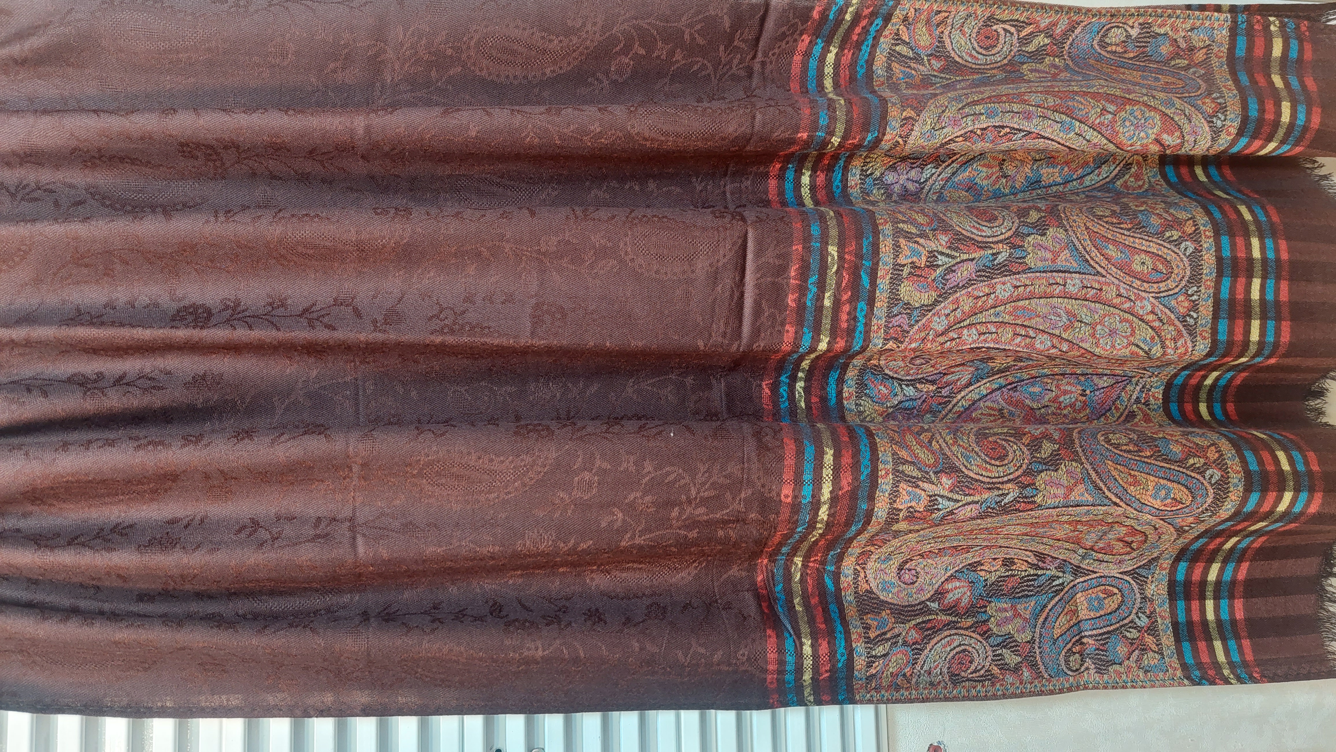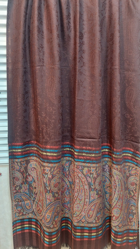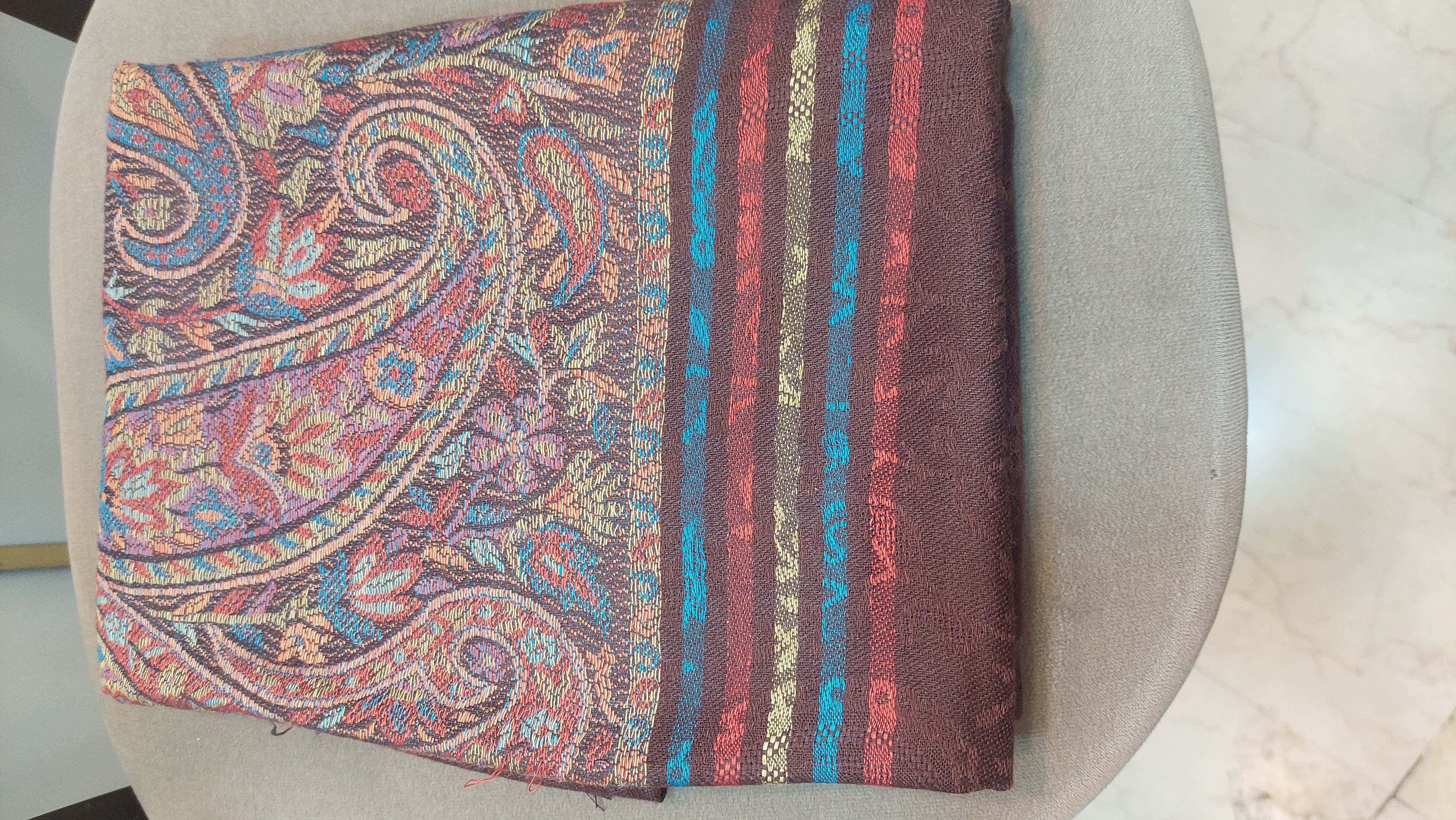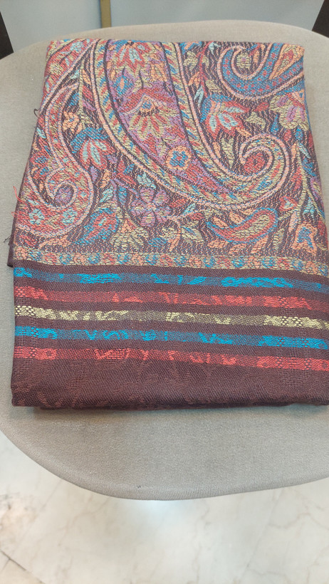 وسط شال قهوه ای طرح ترمه ژاکارد داره ازخود پارچه