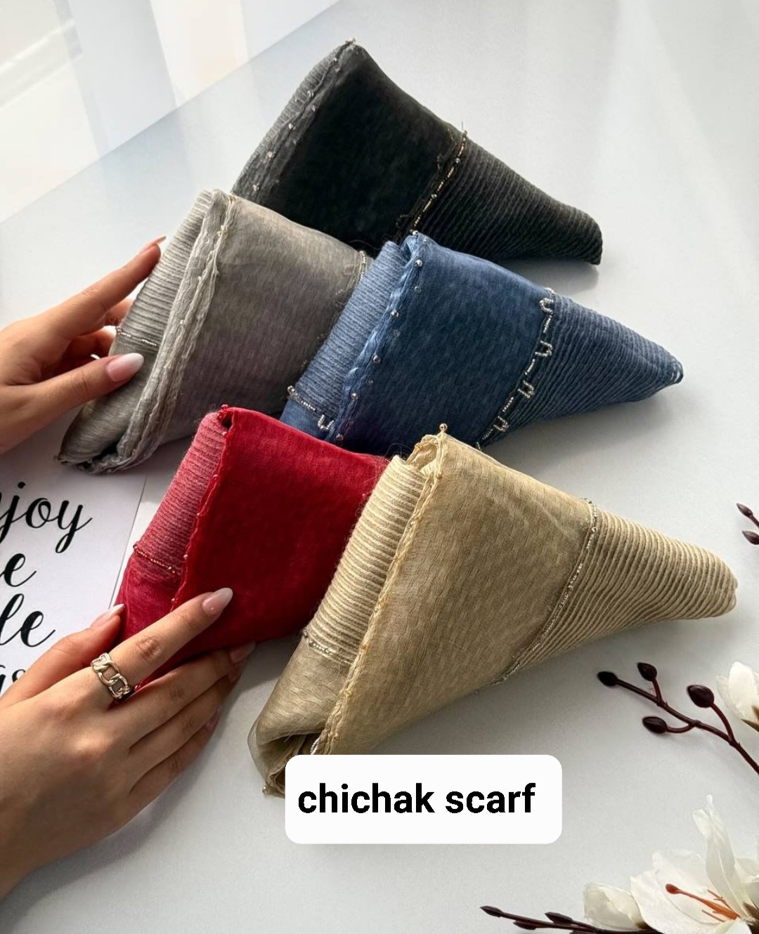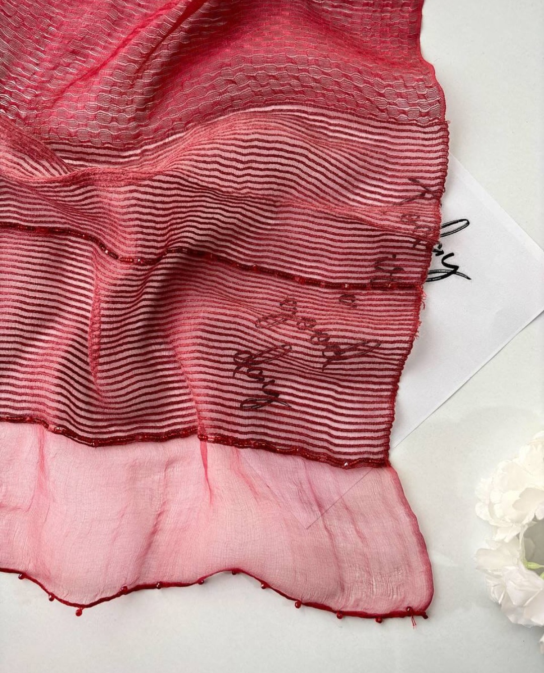 شال وارداتی دستک کار شده ملیله های ریز روی سر اصلا لیز نمیخوره خیلی سبک و شیک قواره ۲ در ۸۰ در ۳ رنگ زرشکی ،آبی،کرم