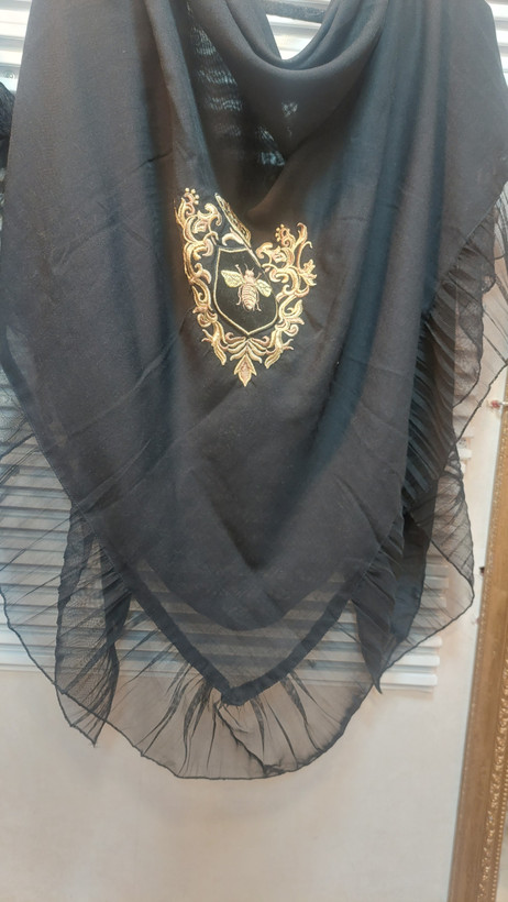 پشت سه گوش روسری برند زنبور گوچی گلدوزی شده