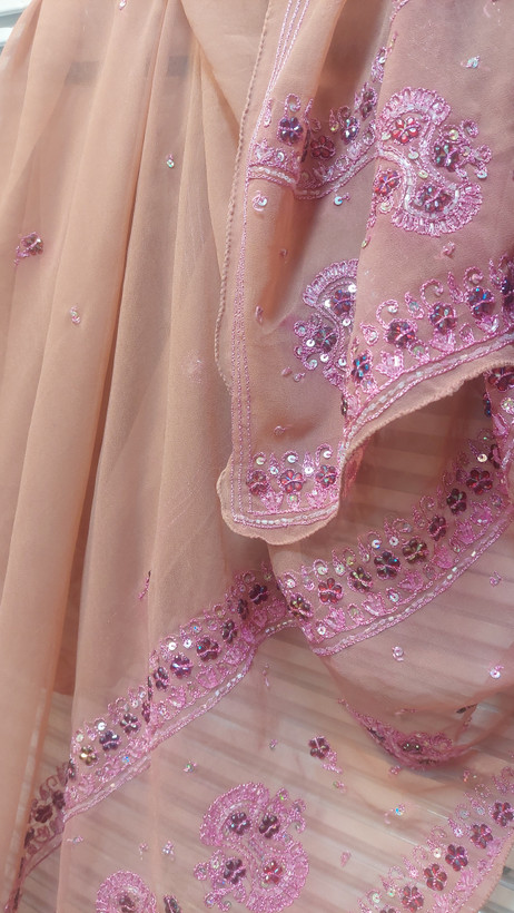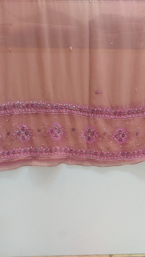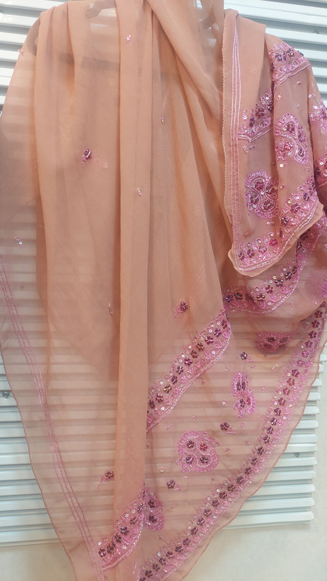 دست شال تمام ملیله دوزی و سنگ دوزی شده دور تا دور شال گلدوزی و وسط کار سنگدوزیهای پراکنده کار شده