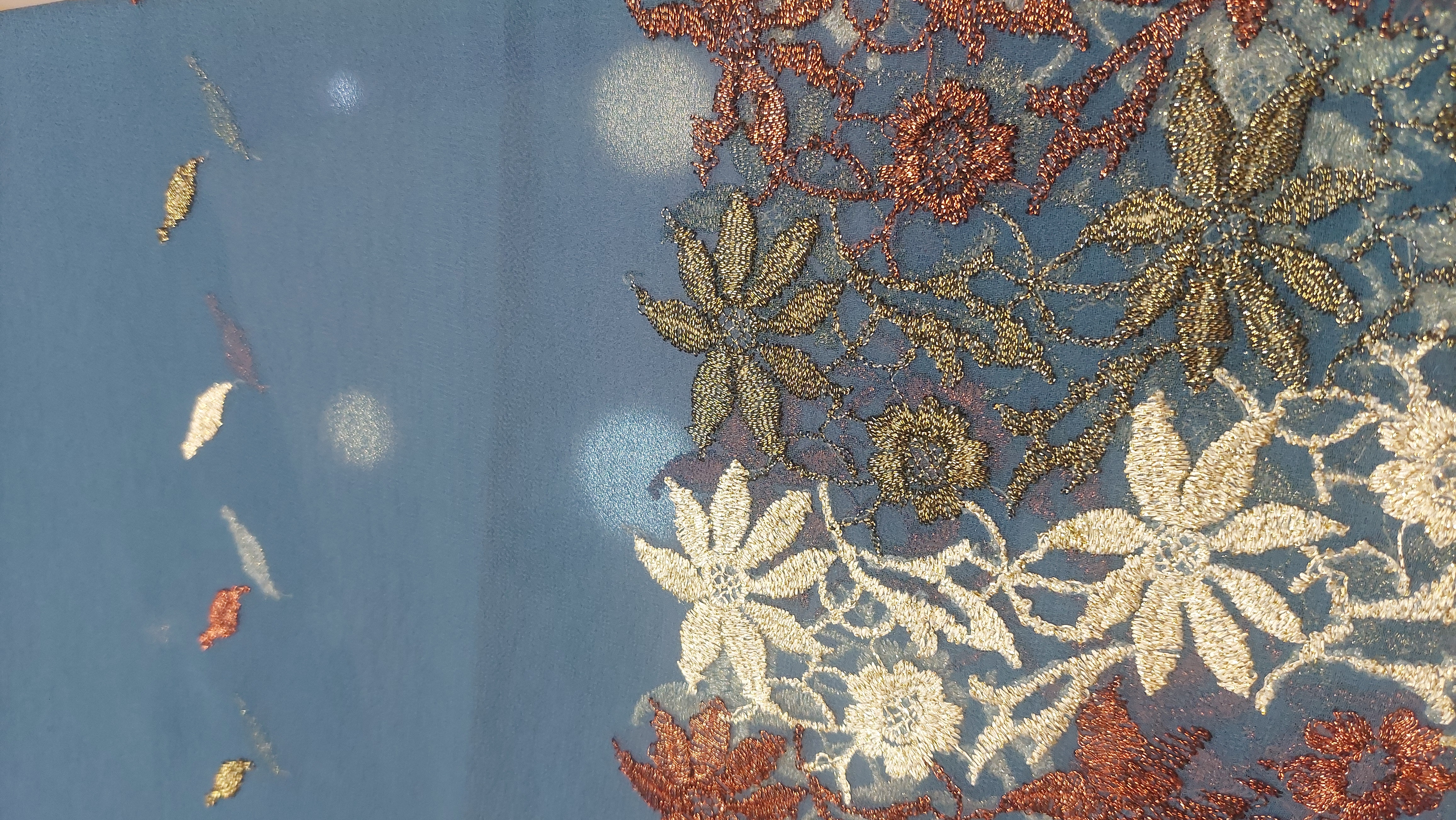 با گلدوزیهای طلایی بسیار ظریف دور تا دور شال